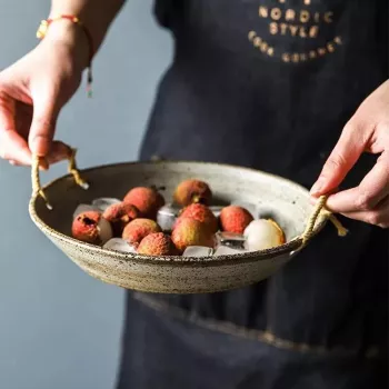 Handmade Japanese Coarse Pottery Dinner Plate with Rope Handle