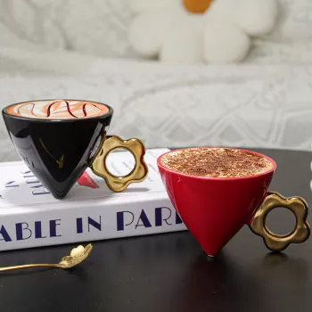 Nordic Blossom Ceramic Mug & Saucer Set – Elegant Couple Tea & Coffee Cups