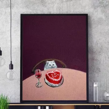 Frameless Cats Pairing Red Wine Poster – Modern Minimalist Wall Art for Living Room